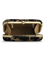 Black & Gold Embroidered Box clutches, Has gold chain shoulder strap, 1 main compartment with twist closure