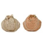 Combo – Designer Embroidered Potli Bag – Golden & Beige