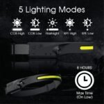 LED Motion Sensor Waterproof Head Torch USB Rechargeable Headlamp Flashlight 350 Lumen Silicone Head Lamp for Swimming, Cycling, Camping & Trekking