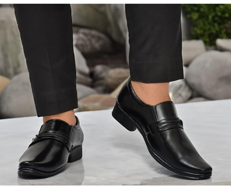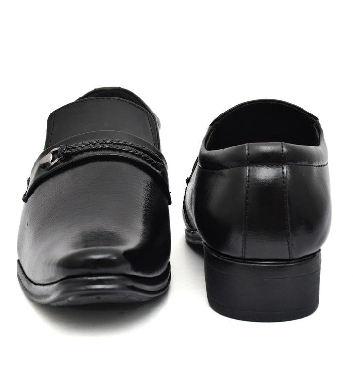 Men’s Faux Leather Formal Shoes, ? Color: Black, ? Material: Faux Leather, ? : 6, ? Closure Type: Slip-On, ? Heel Type: Flat, ? Type: Formal Shoes, ? Disclaimer: The color of actual product may vary slightly from the images provided due to photographic lighting conditions and difference in screen resolutions.